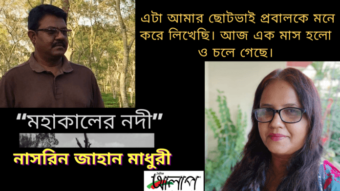 নাসরিন জাহান মাধুরী তার ছোটভাই প্রবালকে মনে করে লিখেছেন “মহাকালের নদী ”যিনি আজ এক মাস হলো না ফেরার দেশে চলে গেছে।