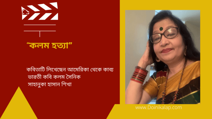 “কলম হত্যা ” কবিতাটি লিখেছেন আমেরিকা থেকে কাব্য ভারতী কবি কলম সৈনিক সাহানুকা হাসান শিখা