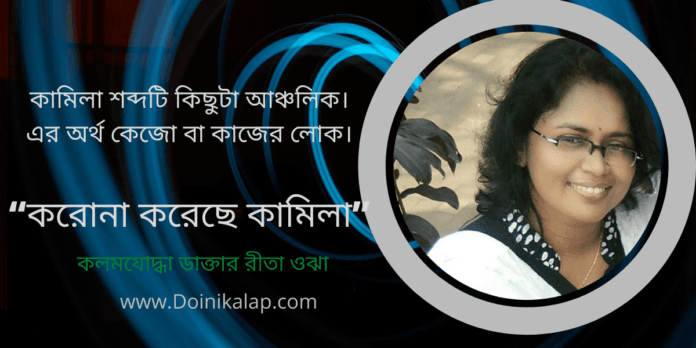 করোনা ক্রান্তি কালের বিশ্লেষণ ধর্মী লেখা “করোনা করেছে কামিলা ”লিখেছেন কলমযোদ্ধা ডাক্তার রীতা ওঝা