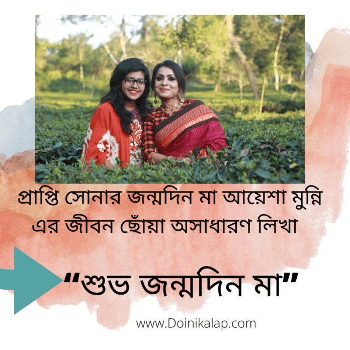 আমি সবসময়ই প্রাপ্তি কে বলি-ময়না মানুষের মত মানুষ হও, সাদা মনের সাদা মানুষ। আমার মেয়েটার জন্য সবার দোয়া চাই। আল্লাহ যেন ওকে সুস্থতা সহ নেক হায়াত দান করে। পৃথিবী সমান সফলতা যেন ওর কদম ছুঁয়ে যায়।
