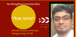 ঈদে মিলাদুন্নবী (সঃ) উপলক্ষ্যে“ইচ্ছে আমার”কবিতাটি লিখেছেন কলমযোদ্ধা লকিতুল্লাহ মাহমুদ চিশতী