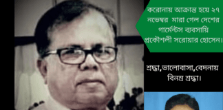 শ্রদ্ধা,ভালোবাসা,বেদনায় দেশের গার্মেন্টস ব্যবসায়ি প্রকৌশলী সরোয়ার হোসেনকে স্মরণে জীবন বোধের...