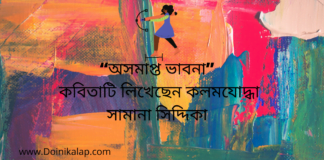 “অসমাপ্ত ভাবনা” কবিতাটি লিখেছেন কলমযোদ্ধা সামানা সিদ্দিকা
