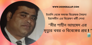 ইতালি থেকে সমাজ বিশ্লেষক-সৈয়দা ইয়াসমীন এর বিশ্লেষণ ধর্মী লেখা “মীর শাহীন...
