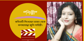 “শিল্পী ”কবিতাটি লিখেছেন ভারত থেকে কলমযোদ্ধা জুলি লাহিড়ী।