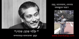 শ্রদ্ধা,ভালোবাসা,বেদনায় বঙ্গবন্ধুকে স্মরণে কলমযোদ্ধা–আফরোজা ঝুমুর লিখেছেন কবিতা“শোক হোক...