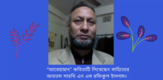 “আবেহায়াৎ” কবিতাটি লিখেছেন সাহিত্যের অন্যতম সারথি এন এম রফিকুল ইসলাম।