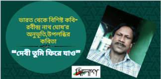 দেবী তুমি ফিরে যাওরবীন্দ্র নাথ ঘোষকতনা ক্লান্তির শেষেনিশীথে ধুয়েছো বুক পুষ্প পরাগে,যদি ইতর সংসর্গ ভালো না লাগেদেবী তুমি ফিরে যাও তোমার নিজস্ব স্বর্গে।এখানে আলতো...