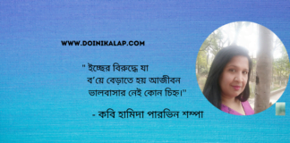 “বন্ধন”লিখেছেন সভ্যতা গড়ার অন্যতম সারথি কবি হামিদা পারভিন শম্পা।