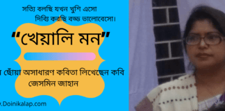 “খেয়ালি মন”জীবন ছোঁয়া অসাধারণ কবিতা লিখেছেন কবি জেসমিন জাহান