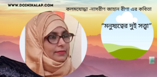কলমযোদ্ধা -নাসরীণ জাহান রীণা এর কবিতা “মনুষ্যত্বের দুই সত্ত্বা”